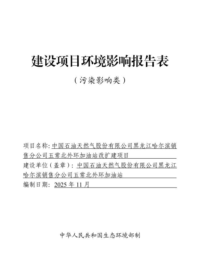 中國石油天然氣股份有限公司黑龍江哈爾濱銷售分公司五常北外環(huán)加油站改擴建項目.pdf